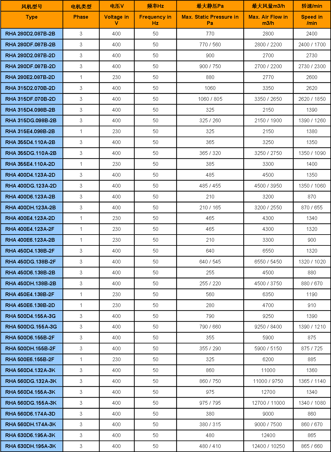 RHA系列 材質(zhì):鋁合金,外轉(zhuǎn)子電機直驅(qū); 葉輪直徑:280-630mm; 最大風(fēng)量:17000CMH; 最高靜壓:1150Pa
